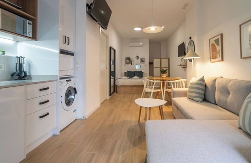 Welcome to your urban oasis in the heart of Valencia! This modern studio on Ausias March Street combines the elegance of Scandinavian design with a warm, inviting touch, perfect for unwinding after a day exploring the city. Its open-plan layout offers a bright space that seamlessly connects the living area with the sleeping area, decorated with natural details and a soft color palette that creates a serene, relaxing atmosphere.