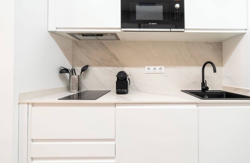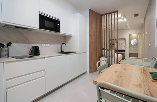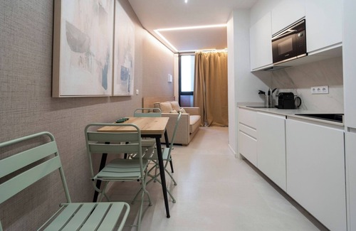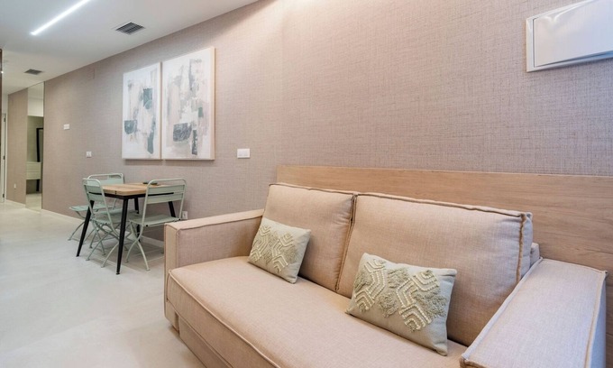 Stylish studio in central Valencia’s Arrancapins neighborhood, near Ruzafa, Joaquín Sorolla station, and the historic center. Features a double bed, sofa bed, full kitchen, rain shower, and dining area. Bright, calm, and well-connected—perfect for short stays or work trips. Close to cafés, shops, Central Market and easily connected to top sights like the City of Arts and Sciences.