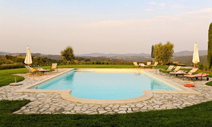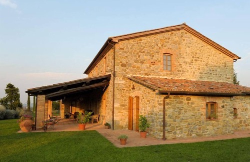 Vocabolo Rondò is a beautiful farmhouse located in Umbria, in a very panoramic position. It is the right place to host those who want to enjoy a stay in the beauty and tranquility that the Umbrian hills can offer. The farmhouse, divided into two apartments, is completely renovated with bio-architecture techniques and materials in full respect of nature. The furnishings are in harmony with a country setting, welcoming and simple, where the ceilings with wooden beams and terracotta floors combine with the rustic furniture without detracting from the modern functionality of the structure. The apartments, which can also be rented together as an independent house with 12/13 beds, are furnished with fine upholstery and curtains that give a sense of balance between refinement and tradition, for a relaxing holiday. Services: swimming pool (8x16 m - 1.10-1.60 m high), satellite TV, WI-FI, laundry, table tennis, barbecue, mountain bike