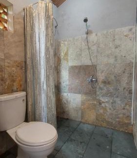 BathroomToilet paper, Free toiletries, Bidet, Private bathroom, Shared toilet, Bathtub or shower, Towels, Shampoo, Conditioner, Walk-in shower, Shower, Toothbrush, Body soap, Toilet, Guest bathroomGeneralFan, Key access, Tile/Marble floor, Air conditioning, Trash cans, Private entrance, Mosquito netKitchenRefrigerator, Kitchenware, Kitchen, StovetopLiving AreaDesk, Sitting areaOutdoorsOutdoor furniture, Terrace, Patio, Outdoor dining areaViewInner courtyard view, View, Garden viewBedroomWardrobe or closet, LinensAccessibilityEntire unit located on ground floor, Entire unit wheelchair accessibleRoom AmenitiesClothes rack, Non-feather pillow, Socket near the bedPhysical distancingSingle-room AC for guest accommodation |