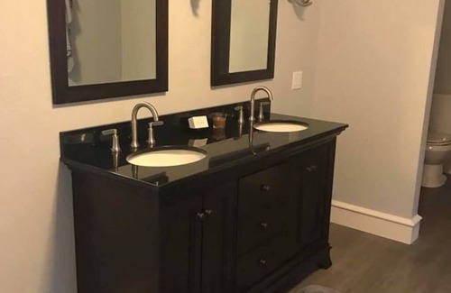 Oversized bathroom with double vanity, 60" walk in shower, handicap shower chair if needed. Spend your mornings and evenings sitting on the patio and relaxing.