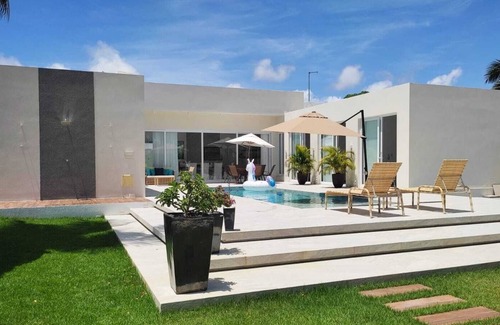 This 5 Bedrooms House provides accommodation with Kitchen, Air Conditioner, Pool, for your convenience. This House features many amenities for guests who want to stay for a few days, a weekend or probably a longer vacation with family, friends or group. This House is less than 2 km from Aruanda, and gives visitors the opportunity to explore it. The rental House has 5 Bedrooms and 5 Bathrooms to make you feel right at home.