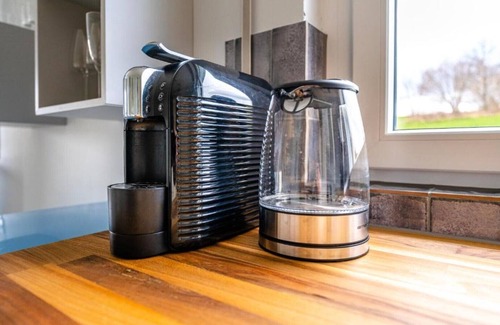Prepare a home-cooked meal in the kitchen, complete with a stovetop and a refrigerator, as well as a coffee maker, an electric kettle, and an ice maker. Bathroom amenities include a hair dryer, towels, and toilet paper. Other amenities include bed sheets, a desk, heating, and a desk chair.