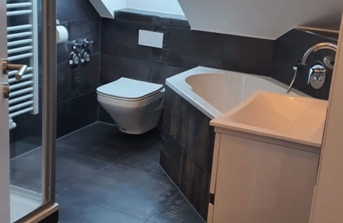 Located in Oberding, this apartment lets you experience it all. Fans of nature and the outdoors will love being 28 minutes by car from Olympic Park and 10 minutes from Erding Thermal Spa. You'll easily make the 6-minute drive to Erdinger Weissbrau Brewery or the 13-minute drive to Munich Eichenried Golf Complex.