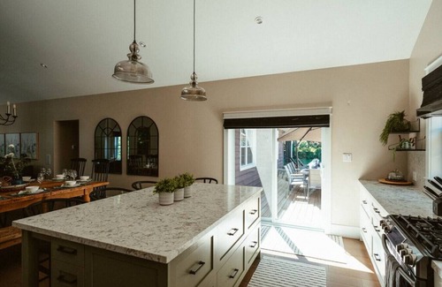 ➜The kitchen is fully equipped with appliances including a large fridge, stove, oven, microwave, and dishwasher