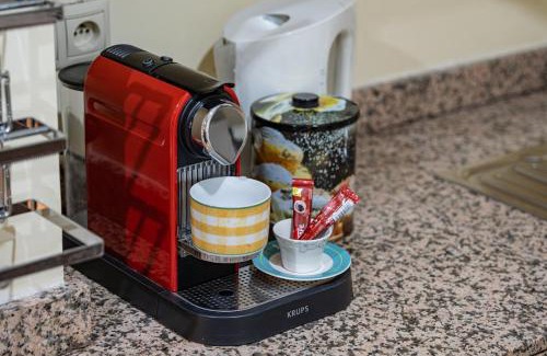 Food & DrinkBottle of water, Tea/Coffee makerBathroomTowels, Body soap, Shower, Free toiletries, Shampoo, Towels/Sheets (extra fee), Guest bathroom, Private bathroom, Hairdryer, Toilet, Toilet paperGeneralFire extinguisher, Heating, Tile/Marble floor, Carbon monoxide detector, Private entrance, Iron, Smoke Alarm, Ironing facilities, Air conditioning, Trash cansOutdoorsOutdoor furniture, Terrace, Balcony, Outdoor dining areaKitchenKitchen, Stovetop, Toaster, Electric kettle, Wine glasses, Oven, Cleaning products, Kitchenware, Washing machine, Refrigerator, Coffee machine, Dining table, MicrowaveLiving AreaSitting area, Dining area, SofaMedia & TechnologyFlat-screen TV, Streaming service (like Netflix), Satellite channelsViewView, City viewBedroomWardrobe or closet, Childrens' cribsAccessibilityEntire unit wheelchair accessible, Upper floors accessible by elevator, Accessible by elevatorBuilding CharacteristicsPrivate apartment in buildingRoom AmenitiesAdapter, Drying rack for clothing, Socket near the bed, Fold-up bedPhysical distancingSingle-room AC for guest accommodation |