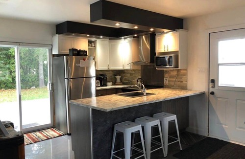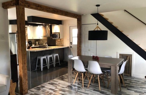 Nestled on the peaceful shores of the magnificent Lac-Frontière, our modern and chic chalet offers you a getaway in the heart of Quebec's nature. Our chalet combines contemporary comfort with the warm atmosphere of traditional chalets, creating an enchanting setting for an unforgettable vacation.