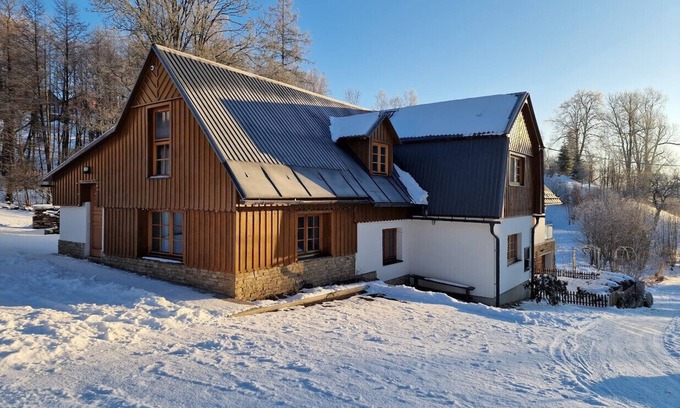 Located in the village of Sklenařice, this 17th-century gem is one of the original dwellings in the area. With a recent renovation, it now exudes warmth and hospitality, making you feel right at home. The apartment is adjacent to the main building but is completely self-contained. It boasts its own entrance, including ski storage and parking for two cars.