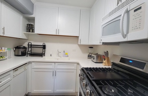 This Waikiki condo was newly remodeled in June 2023, with 2 bedrooms, 2 full baths. The full kitchen has an oven, stove range, microwave, dishwasher and refrigerator, and includes fully stocked, large living room has a queen size sleep sofa/futon and 2 single full-out chair beds with sheet blanket, pillows ready to fold inside. Each room has a unit AC and new smart TVs with free WiFi. It is spacious, almost 1,000 sq.ft. There are 2 patios that have city views, mountain views, and ocean views. Including free 1 parking inside premises. The condo's very breezy, in a good location, only a few minutes walk to the famous Waikiki beach, steps away from many restaurants, with endless dining, shopping, zoo and park. The PERFECT location to enjoy everything that Waikiki has to offer!
