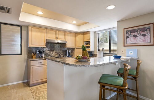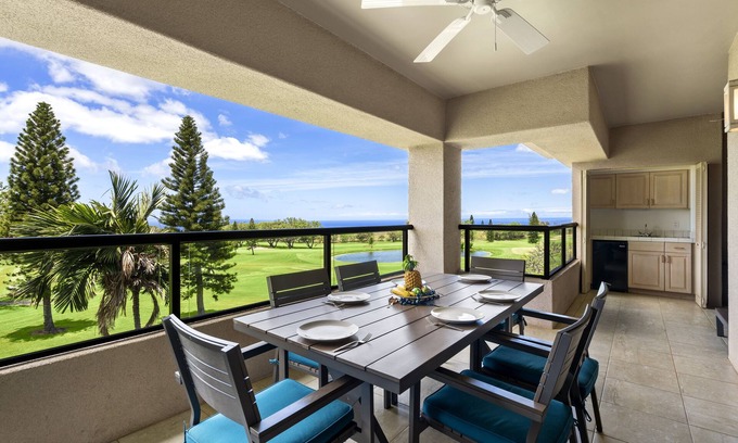 The large lanai allows for access from either primary or the living area. Have dinner outside and watch the sunset from your large private lanai and outside dining table. Stir up some drinks at your outside minibar and soak up the Hawaii life.