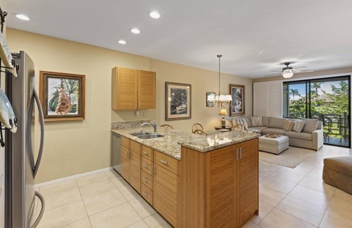 Wailea Grand Champions 31 is a recently updated vacation rental that offers a perfect blend of comfort, style, and convenience in the heart of Wailea. This two-bedroom, two-bathroom condo features modern upgrades including granite countertops, new cabinetry, and state-of-the-art appliances, ensuring a luxuriously modern stay for guests.