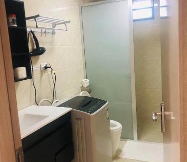 BathroomShower, Toilet paper, Shampoo, Toilet, Free toiletries, Hairdryer, Private bathroom, Body soapGeneralAir conditioning, Key access, Trash cans, Suit press, Ironing facilities, Tile/Marble floor, Smoke Alarm, Soundproof, Fire extinguisher, IronKitchenRefrigerator, Dining table, Cleaning products, Stovetop, Wine glasses, Microwave, Kitchenette, Washing machine, Kitchen, Toaster, Kitchenware, Electric kettleOutdoorsBalconyLiving AreaSitting area, Sofa, Dining areaMedia & TechnologyFlat-screen TVViewPool view, ViewServicesWake-up serviceBedroomWardrobe or closet, LinensBuilding CharacteristicsPrivate apartment in building, DetachedRoom AmenitiesClothes rack, Sofa bed, Socket near the bed, Drying rack for clothing, Non-feather pillowPool and SpaPool with a view, Plunge PoolPhysical distancingSingle-room AC for guest accommodation |