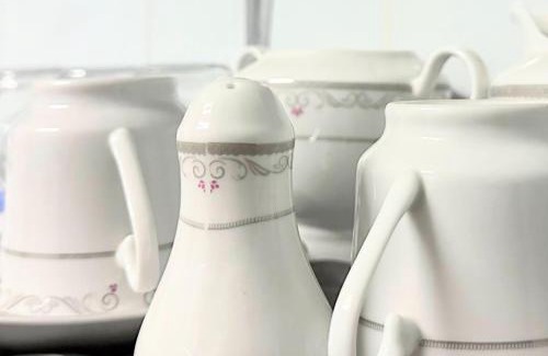 All plates, cutlery, glasses, and other tableware sanitized