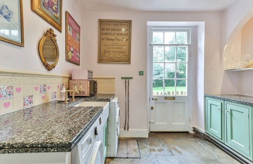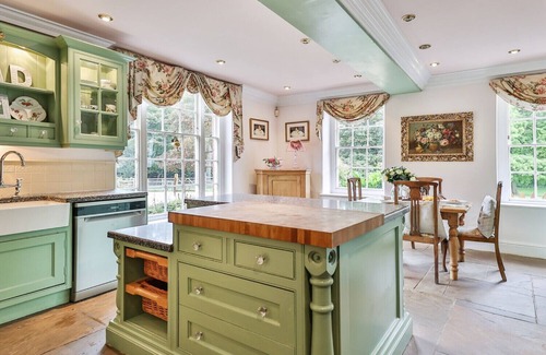 The kitchen is a glorious example of a fine country kitchen, with beautiful wooden cabinetry, a large kitchen island, and a wonderfully homely feel. It is excellently equipped with all manner of kitchenware. Additionally there is a dishwasher, and the main feature - a full size Aga range cooker, set proudly in what would have been the original kitchen fireplace. There is also a farmhouse table to seat four, providing informal dining space ideal for social family breakfasts. Off the kitchen there is also a pantry, offering storage space and providing essentials such as oils and spices if needed.
