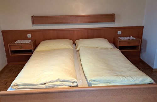 "Tanne", 3-room apartment 65 m2 on 1st floor. Cosy furnishings: 1 room with 1 double bed. 1 room with 1 double bed. Kitchen-/living room (oven, 4 ceramic glass hob hotplates, toaster, kettle, microwave, electric coffee machine) with 1 bed (length 170 cm), dining nook and satellite TV. Exit to the balcony. Bath/WC. Heating. Parquet floors. Balcony. Balcony furniture. Facilities: children's high chair, baby cot. Internet (WiFi, free). Please note: non-smokers only. Smoke alarm.