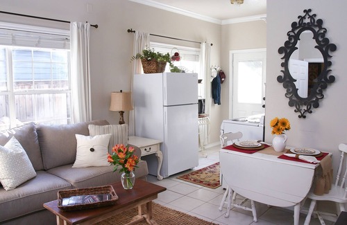 The newly furnished suite features a master bedroom with king size bed, desk and sitting area. The living area includes a queen size sofa sleeper and dining table. During your stay, enjoy a 50'' flat screen television as well as free wireless internet. The kitchenette features a stovetop with an oven, microwave, coffee maker and refrigerator. The suite includes private entry and one covered parking space.