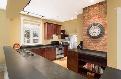 The 1,000 sq. ft. condo features a well-appointed kitchen, en-suite bathroom with classic clawfoot tub, and in-unit laundry. Relax among sophisticated furniture and décor, HDTVs in the living room and bedroom, and luxurious bedding for the most serene of slumbers. Complimentary coffee and tea is provided for all of our guests.