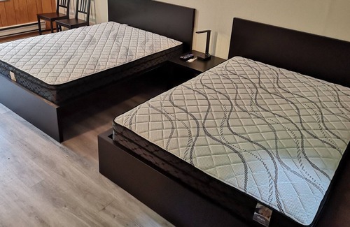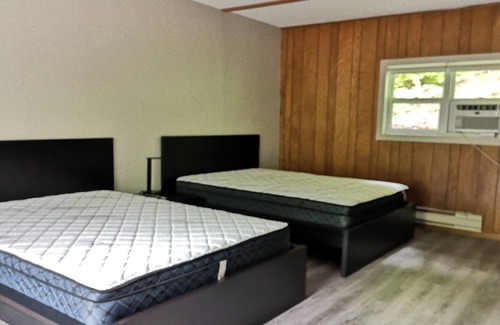 Firehouse Lodge Newly Renovated with Walk out Deck, Full Bathroom, Queen Beds, Wifi, 50″ LED Satellite Tv, Fridge, Microwave.