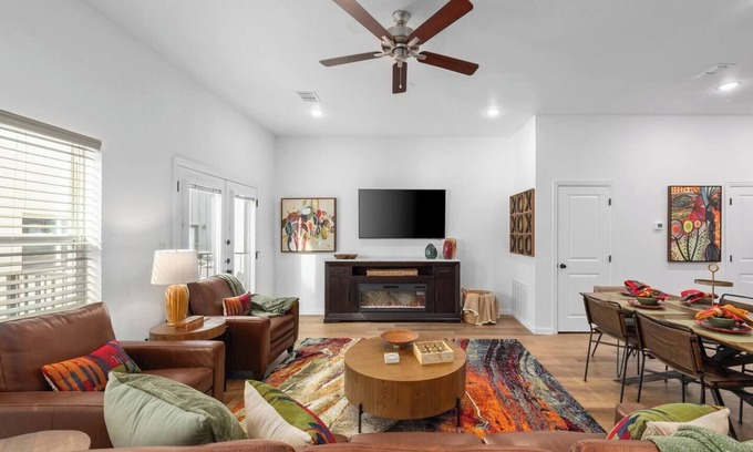 Immerse yourself in the excitement of Arlington’s Entertainment District with this stunning NEW 2-bedroom, 2.5-bathroom townhome, just a short walk from AT&T Stadium, Globe Life Field, and Choctaw Stadium. Accommodates up to 6 guests. Enjoy the perks of a gourmet kitchen, cozy living spaces, WiFi, rooftop deck, and parking. Whether you’re in town for the big game or to experience vibrant city life, this stylish retreat offers the perfect balance of comfort and convenience for a memorable stay.
