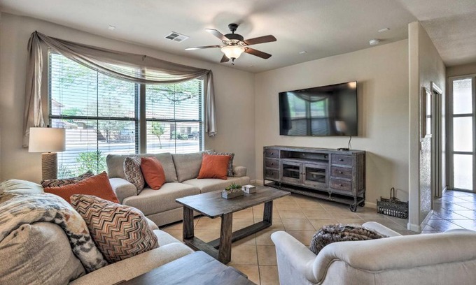 19 miles from Phoenix Convention Center in Goodyear, Walk to Community Pool Goodyear Desert Oasis offers accommodations with access to a spa center. Guests can benefit from a patio and an outdoor pool. Free Wifi is available throughout the property and Copper Square is 19 miles away. The air-conditioned vacation home consists of 2 bedrooms, 2 living rooms, a fully equipped kitchen with a dishwasher and a coffee machine, and 2 bathrooms with a bath and a hair dryer. Towels and bed linen are featured in the vacation home. The property has an outdoor dining area. State Farm Stadium is 9.2 miles from the vacation home, while Arizona Capitol is 17 miles away. Phoenix Sky Harbor International Airport is 21 miles from the property.