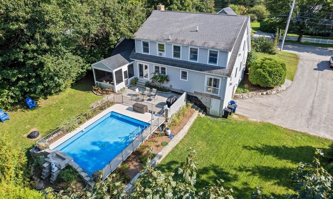 Discover your perfect getaway in York, ME! This spacious home, just a short walk from Long Sands Beach, features 2 luxurious king bedrooms with en-suite baths. Enjoy the private pool in the expansive backyard, complete with a fire pit ideal for family time. The property also includes a dedicated office space, perfect for remote work. With plenty of room for kids and pets to play, this dog-friendly retreat is the ultimate family escape. Experience beachside bliss and relaxation.