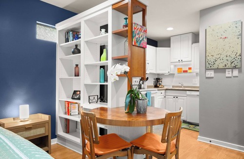 The Johanna Bee is a true Austin hideaway just south of Downtown. Located in one of Austin’s oldest and most charming neighborhoods, Bouldin Creek, you’ll find yourself just steps away from local bakeries, coffee shops, restaurants & vintage stores. A 6 min drive will get you to Downtown or Zilker Park & a splendid 10 min walk to the trendy South Congress neighborhood. Experience Austin like a local from this cute studio cottage with a private yard, free parking, cable TV & full kitchen.