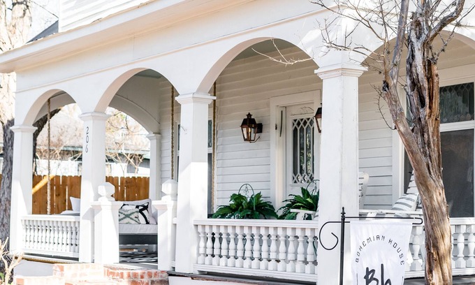 Welcome to Bohemian House. This charming home was built by settlers from Bohemia circa 1856 in the quaint town of Fayetteville, Texas. Bohemian House has just completed her glow up with a full renovation that honors her original features while upgrading her with plush amenities. Bohemian House is designed with a modern vintage vibe and captures the unique artsy energy of Fayetteville. Located just 10 minutes from the Marburger Antique show and 12 minutes from Round Top.