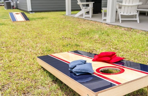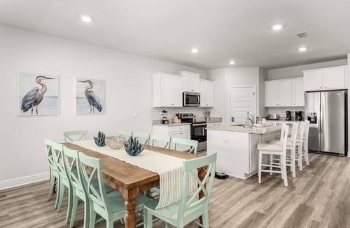 Minutes to the beach and pool! Packed with family-friendly perks, this 4BR home sleeps 11 and includes everything you need for the perfect getaway! Enjoy a 6-seater golf cart, 3 bikes, 2 pack ’n plays, high chair, kids' dinnerware, board games, beach toys, towels, chairs, and more. Furry friends welcome with dog bed and bowls! Play Cornhole or Connect Four, then relax in spacious bedrooms (2 Kings!). Perfect for families, multi-gen trips, and memory-making at the beach!