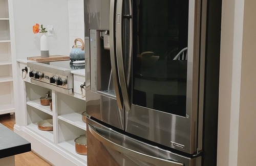 Our home has a full kitchen, stocked with all the essentials from making morning coffee to preparing full meals. Some of the items we keep stocked for use include a blender, coffee pot, toaster, pots and pans, Pyrex containers for leftovers, wine and drinking glasses, mixing bowls, dish towels and sharp knives.