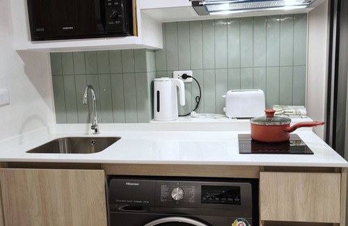 This recently built condo of 29 sqm on the 8th floor (Top Floor) features a separate bedroom , a lounge/dinning and a fully equipped kitchenette with microwave, induction hotplates and full size refrigerator. The Condo also has a smart TV with 2 air conditioners, along with a queen sized bed in the separate bedroom with a balcony for those nights to wind down and have a nice cold drink - from the balcony there are nice mountain views