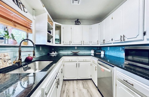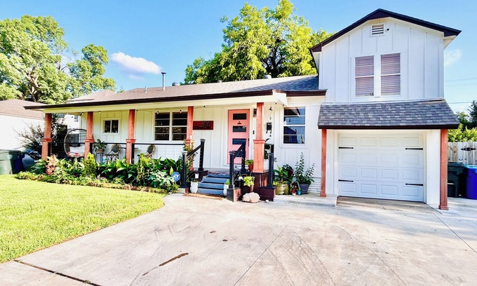 Dare you to Compare our accessible amenities! Located on the historic Original Mile in Midwest City. Walking distance from just about anything you need! A multitude of restaurants, shopping, entertainment amenities, and Tinker Airforce Base. This Native inspired retreat hosts 4 Bedrooms - Primary suite is bathed in natural light and overlooks the backyard garden. The rooms centerpiece... a massive, mirrored vintage headboard with King size pillowtop mattress. Backyard - Mature Pecan tree creates a perfect shaded canopy for the back patio sofa. Fullsize outdoor dining table sits beneath a pergola dressed in lights. Cozy firepit with log seating. Fully fenced in backyard. Upstairs 4th bedroom suite - Queen size wrought iron bed, Futon Sofa bed, seating area and a Pack n Play crib. Perfectly positioned within walking distance to name just a few - 3 parks: including Tinker Bicentennial Park and the newest addition W.P. Bill Atkinson Park. Starbucks Coffee. Shopping: Target, Khol's, Marshals, Old Navy, Best Buy, Ulta Beauty, Hibbit Sports, Vintage Stock, Huntington Fine Jewlers, Pets Mart, Shoe Depo, Restaurants: Logan's Roadhouse, Chili's, The Big Biscuit Breakfast, Santa Fe Cattle Company, Bricktown Brewery, Cheddars Scratch Kitchen, Seafood Party MWC. Fast Food: Chick-Fil-A, Panera Bread, Wing Stop, Macalister's Deli, Taco Bell, Raising Cains, Schlotzsky's, QDOBA, Jack in the Box, Panda Express. Extras: Sports Clips, Firestone, Lowes, and SO MUCH MORE!