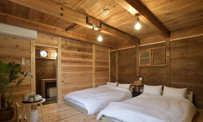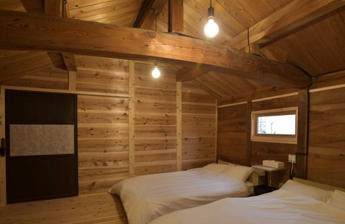 It is a luxurious space with the scent of cedar wood on the walls floor and ceiling We hope that 2 double beds can be used by 2 people or 4 people can share a bed There is a courtyard between the main building and the storehouse so you
