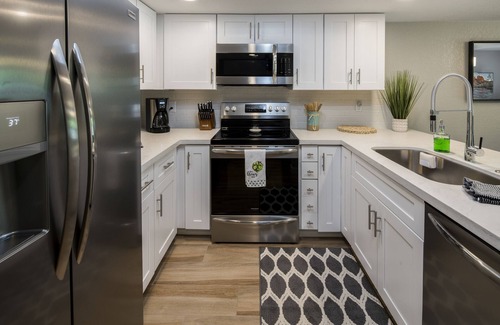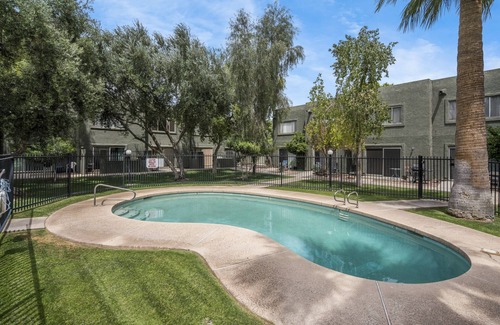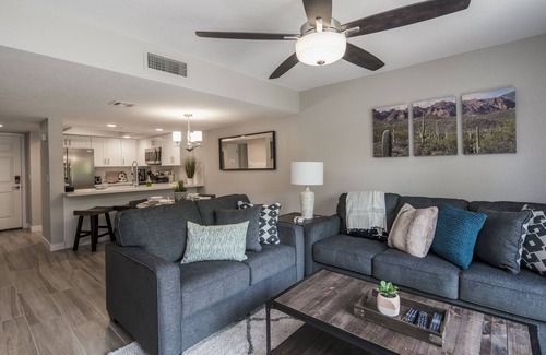 In the heart of Tempe close to everything. Fully remodeled from top to bottom. New white shaker kitchen cabinets, quartz countertops, stainless steel appliances, wood plank floors, and remodeled bathrooms. This cozy townhouse has all the amenities of home including a dedicated workspace and FAST WIFI.