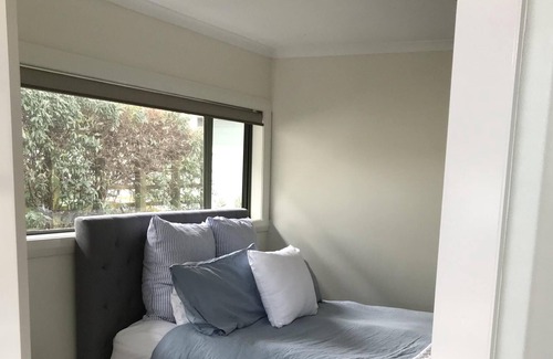 Lovely, light and sunny two bedroom house only 500 metres to the beach. Fully fenced yard, north facing with a sky light to let the sun stream in. A cosy fire for colder nights. Fully functional kitchen with a microwave, oven and dishwasher. The house is wheelchair accessible and on one level with no steps. Walk in wardrobe and plenty of storage for clothes. Room for surfboards and bikes outside. Pretty gardens surround. Longer stays on request.