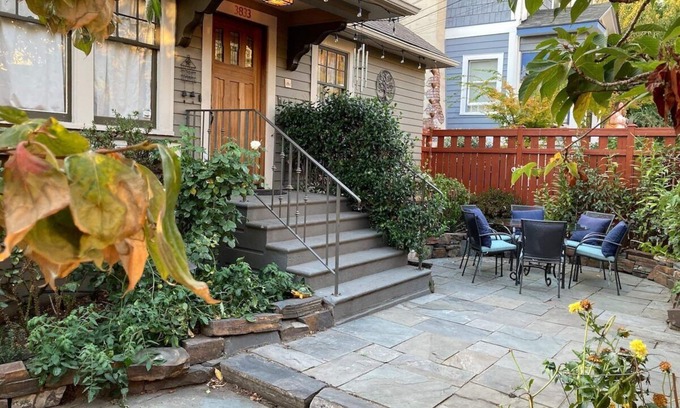 Welcome to historic Wallingford! Our house has 5 steps to the front door which opens to a comfortable living room with 1924 period charm. The adjacent kitchen was remodeled recently with induction cooktop (safe for kids), pot filler, and butcher block cutting board that it pleasant for food preparation. On this floor are two bedrooms with queen beds and lots of character. Between the two bedrooms is a bathroom which was also recently remodeled that has a glass enclosed shower and laundry chute to the laundry room downstairs - making laundry easy. There is a large private room upstairs with a sitting room, workstation, and TV from which French doors open to a small plexiglass enclosed balcony. On the bottom floor is a sitting room with a large TV. The primary bedroom with a king bed is adjacent to the sitting room and has the primary bathroom with heated floors and a large, jetted tub, large glass enclosed shower and 4-person cedar sauna making the Seattle winters much more pleasant. The 5th bedroom is also downstairs and has a single bed with lots of storage and a dresser. The downstairs back door has a small dog door, and the property is fully fenced and safe for dogs who are not determined diggers. There is another back door from the kitchen with a Dutch door which opens to a small area with a grill. The front and side yards are fully stonescaped and with a sitting table and chairs make for pleasant evening summer meals. Under the wisteria covered pergola along the side yard is a hammock (which will be taken down during winter months but can be made available to you). The house is walking distance to too many restaurants, coffee shops and parks to mention. Come relax and enjoy all this special home has to offer.