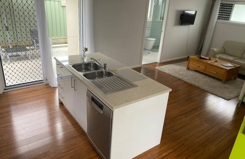 Private entry to your own space. Freshly painted property with full size bedroom with a REAL ensemble King bed. Full size kitchen with full stove, oven, microwave and dishwasher. Rear patio with Weber BBQ and outside table and chairs