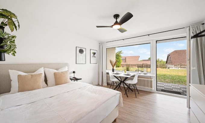 Food & DrinkTea/Coffee makerBathroomToilet paper, Hairdryer, Toilet, Towels, Body soap, Shower, ShampooKitchenWine glasses, Electric kettle, Refrigerator, Coffee machine, Microwave, Stovetop, Kitchenette, Kitchen, Cleaning products, ToasterLiving AreaSitting areaGeneralHeating, Fan, Key access, Smoke Alarm, Trash cans, Carbon monoxide detectorOutdoorsTerrace, PatioMedia & TechnologyFlat-screen TVViewGarden view, ViewBedroomWardrobe or closet, LinensAccessibilityEntire unit located on ground floor, Entire unit wheelchair accessibleBuilding CharacteristicsPrivate apartment in buildingRoom AmenitiesAdapter, Socket near the bed |