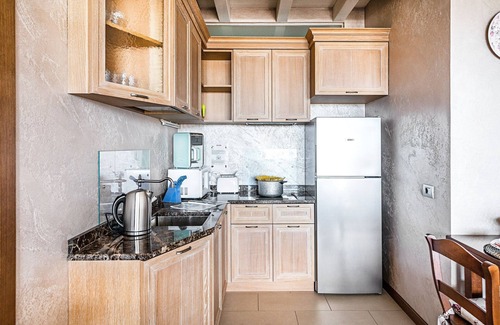 The apartment welcomes guests with the large and bright living room consisting of a single sofa bed, flat screen TV, dining table with chairs and fully equipped kitchen with induction hob, fridge, freezer, microwave, american coffee machine, toaster, electric kettle, juicer.