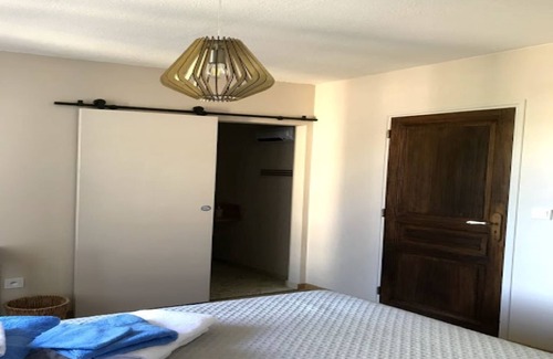 A room "family", equipped with a large bed XXl 180 to accommodate you with its memory foam mattress, and a bunk bed with 3 beds. . The bed linen is linen or Egyptian cotton for incomparable softness.