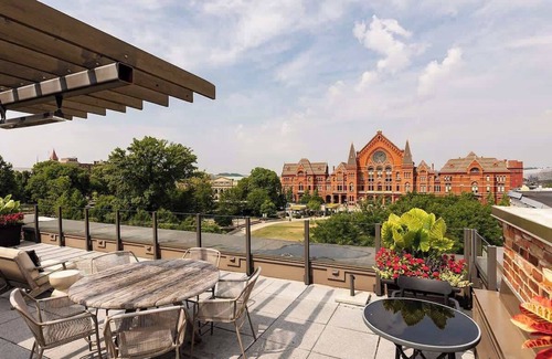 Relax and unwind on the shared rooftop patio, accessible by elevator, with some of the best views in the city. Please note that the rooftop is shared with other guests.