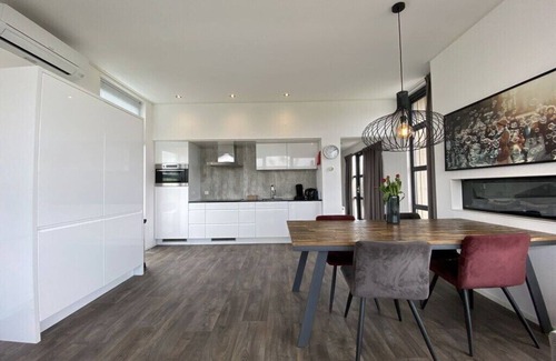 Layout: Hot Water, Internet Access DSL, Pier, Vacuum Cleaner, Living/diningroom(Sofa, Tea Towels, TV, dining table, stove, hob, toaster, cooker, coffee machine, oven, microwave, dishwasher, fridge, freezer, air conditioning), bedroom(Bed Linen, Wardrobe, double bed, TV), bedroom(Bed Linen, Wardrobe, double bed), bathroom(Mirror, shower, washbasin), guest toilet(Mirror, toilet, washbasin), Internet access, Internet access, tumble dryer, washing machine, garden(Sun Umbrella, Lawn, garden furniture, sun loungers, pond), parking, drying cabinet, Charging post for electric cars