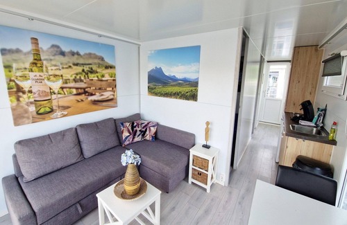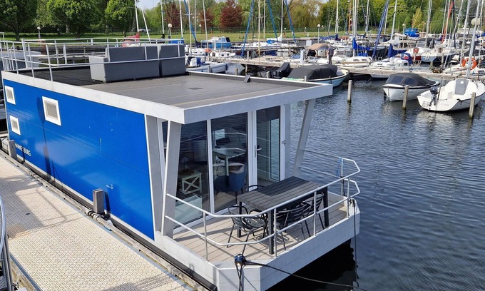 Charming Marina Living with a Twist Experience a unique stay on the water at Waterlodges Naarden, nestled in the scenic Naarden marina with stunning views of 1,200 berthed boats. Located in the peaceful Naarderbos and just 2.5 km from the historic fortified town of Naarden, this floating holiday home is perfect for families, couples, or friends seeking a refreshing escape surrounded by nature, history, and water. Cozy Comfort with Breathtaking Views This stylish water lodge offers a welcoming living space with a TV, a dining area, and a double sofa bed. The compact kitchenette includes a stove, fridge, and coffee maker—ideal for morning brews on the terrace. With one double bedroom and a bunk bedroom, the space comfortably fits 2 adults and 2 children (or up to 4 adults and 2 kids under 12). The modern bathroom includes a shower and toilet. Enjoy evenings on the roof terrace lounge with a glass of wine, watching boats drift by. Pet-Friendly Adventures in Naarden & Beyond Bring your furry friend! The marina paths and surrounding Naarderbos forest offer great dog-walking routes, and nearby beaches like Muiderberg are perfect for paws in the sand. Head to dog-welcoming spots like Café Brambergen or enjoy a pet-friendly hike along the Gooimeer. Whether lounging on deck or exploring the outdoors together, this water lodge is a peaceful pet-loving paradise close to Amsterdam.