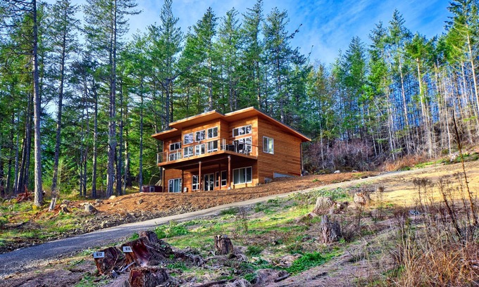 Orcas Island Getaway is pleased to offer a large Modern Northwest design, with clean finishes and views you'll enjoy of from nearly every room in the home.