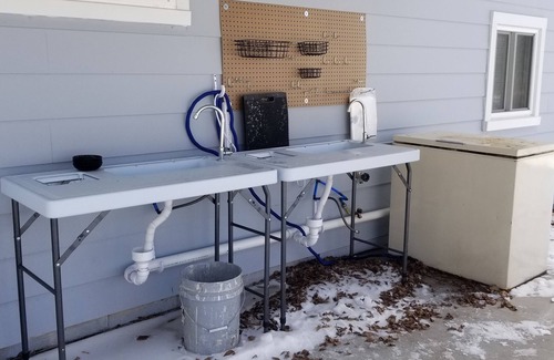 This cottage is a spacious house with full amenities, kitchen accessories/dishes are available for use. It sleeps up to 8 and has two bedrooms and two bathrooms with large walk-in showers. The large dining and living room has lots of seating and has a pull-out double size couch, perfect for watching TV and relaxing after a day of fishing or hunting. There is a covered fish cleaning station with electricity and running water so you can avoid the long lines at the marina. The large backyard has a fire pit and a BBQ/Smoker is available for use as well.