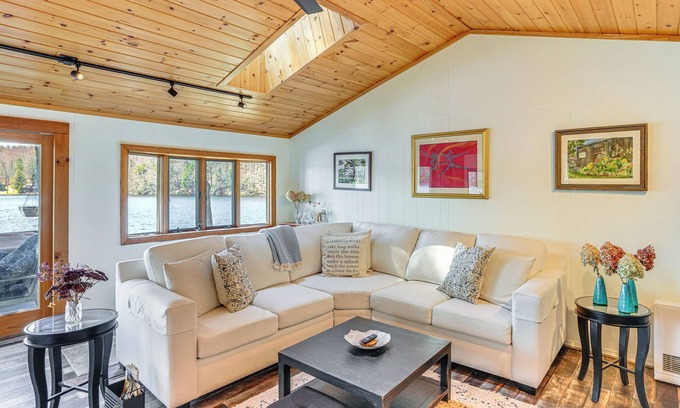 Enjoy the serenity of a Berkshires retreat at this newly renovated, 3-bed, 2-bath vacation rental with spectacular panoramic views of Robin Hood Lake. Splash off the new dock, paddle in a provided canoe, or enjoy the tranquil sunset from the deck or fire pit. Staying inside? Boasting a full kitchen with new appliances, 2 separate living rooms, and picture windows inviting the outside in, this picture-perfect house in Becket is bound to impress!
