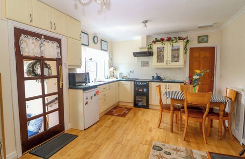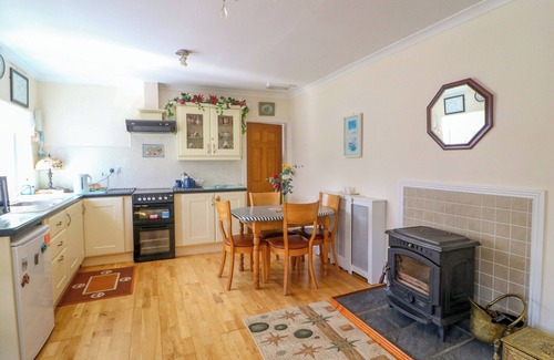 This end-terrace cottage has an open-plan living space with a kitchen, dining area for four guests, and a sitting area with a TV, DVD player, and woodburning stove. Amenities include an electric oven and hob, microwave, fridge, and a shared washing machine located in an external laundry room. There is one double bedroom with a TV and en-suite bathroom. Outside, there is a shared front garden with furniture, and off-road parking. Within 2.9 miles, there is a shop, and within 3.5 miles, a pub. One well-behaved pet is welcome. Please note, this is a non-smoking property. WiFi, fuel, power, starter pack for woodburning stove, bed linen and towels are all included in the price. Note: This property does not accept children. Note: 3 steps up to the living area. Your next romantic holiday in Ireland awaits at Waterfall House.
