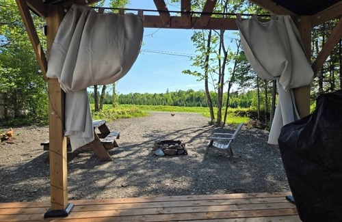 Relax at this countryside oasis and enjoy the peace of nature. You have lots of field and forest around to allow privacy and tranquility. Inside there is a modern yet cozy feel that carrys throughout the camper. One bedroom with a queen bed and a separate cabin with 2 bunk beds allows 6 people to sleep comfortably. Breathe in the country fresh air while being just 13 minutes to 2 different towns and seconds to the gas station/convenience store. Local trails including the trans Canada trail and the famous Maggies Falls are both 3 minutes away.