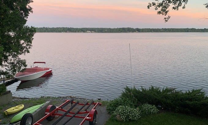 This newly renovated, spacious lake house sits on the north shore of Consecon lake with amazing water views and many cosy nooks to enjoy.