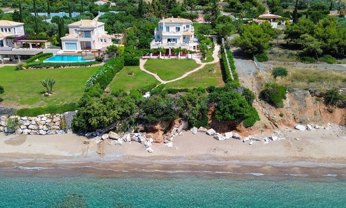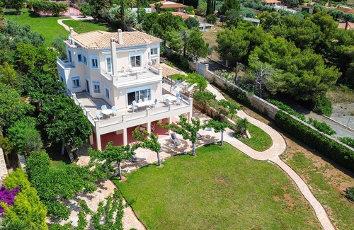 A gorgeous beachside villa with 5 bedrooms, huge garden (with basketball court) and fantastic, unobstructed views of the Saronic gulf. The property is ideal for a large group of friends or family of up to 12 people. You will enjoy a comfortable stay and easy access to a small beach at the foor of the garden. Book now for a memorable stay.
