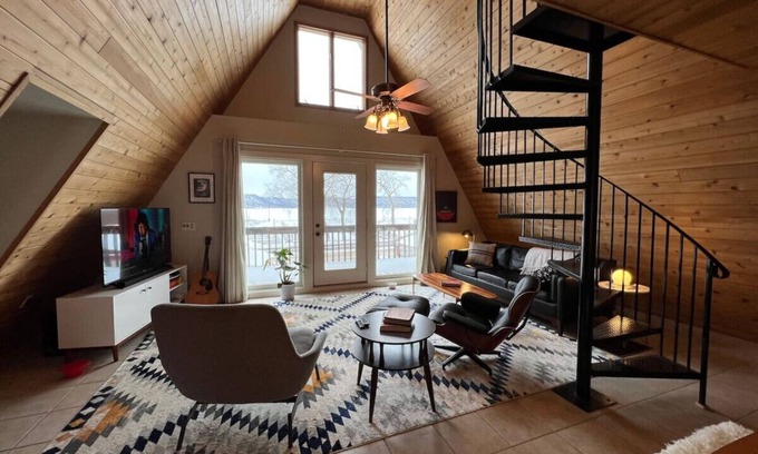 Welcome to The Dockside A-Frame Cabin! The prime spot in Pepin, you are right on the waterfront in a stylish A-Frame home with a balcony and sweeping Lake Pepin views. Wake up with coffee to a river view. Stroll to the beach, and grab lunch at the Pickle Factory. Walk to dinner at the famed Harbor View Cafe, then enjoy a glass of local wine at Rivertime Wine Bar or Villa Bellezza winery. End your evenings on the balcony, watching the sunset.